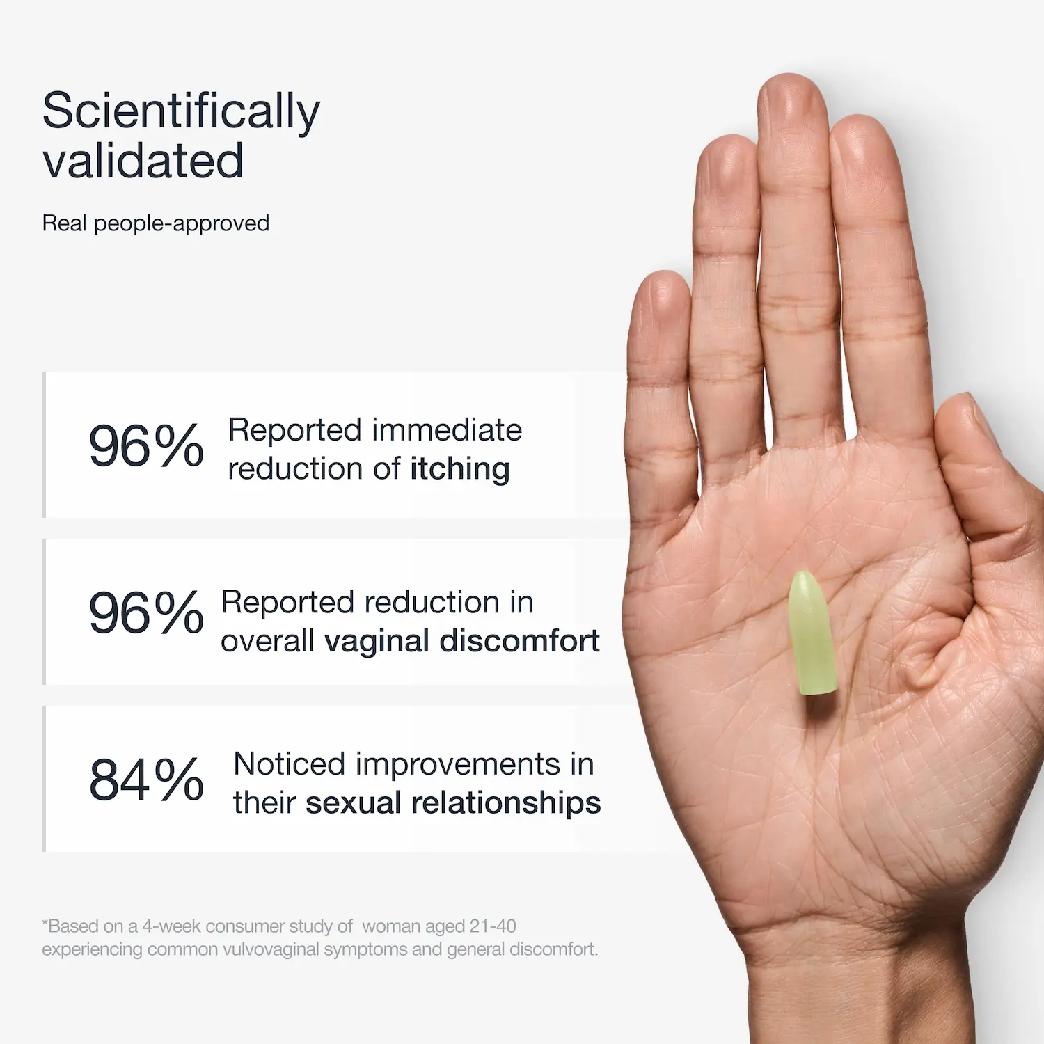 Acts as a moisturizing gel barrier that protects the vulvovaginal biome.